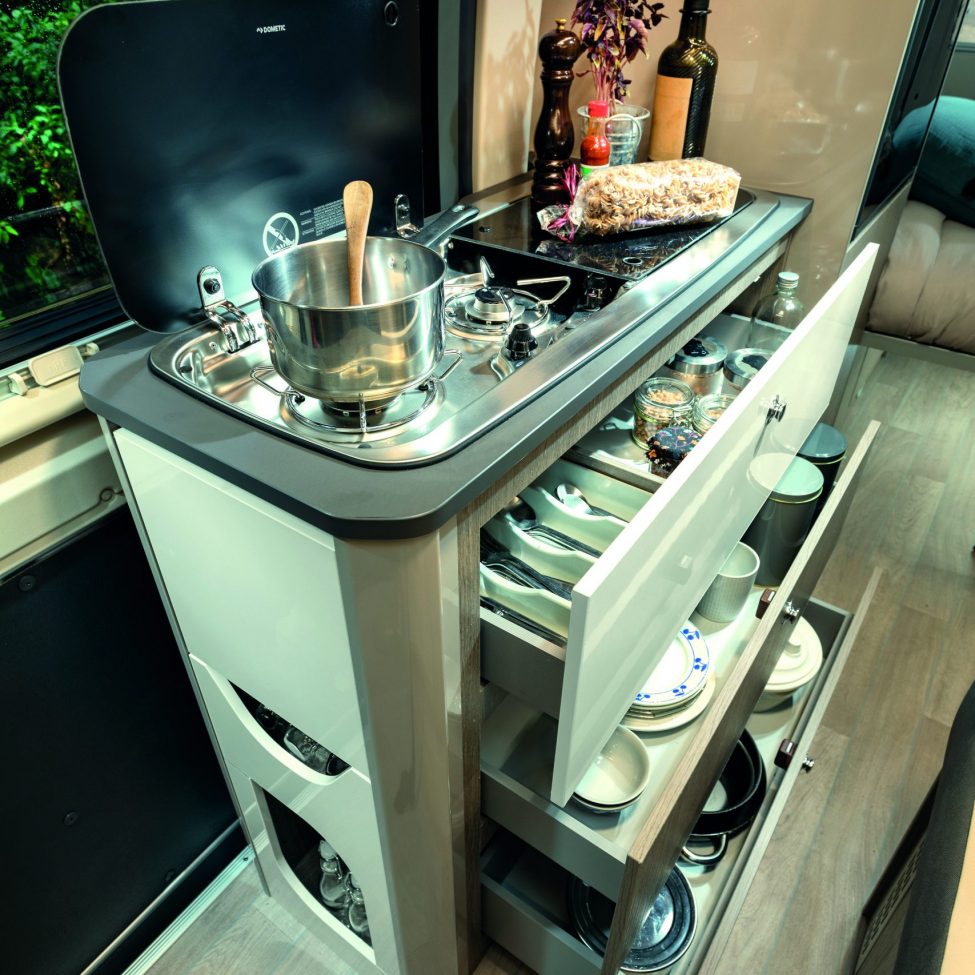 Ta najbardziej kompaktowa ze wszystkich propozycji z pewnością przypadnie do gustu wszystkim, którzy chcą połączyć wygodę z dobrą mobilnością i przystępną ceną. Przemieszczanie się vanem jest łatwe nawet dla osób, które dotąd miały okazję prowadzić tylko małe pojazdy osobowe. Jeśli więc chcesz rozpocząć swoją pierwszą przygodę z caravaningiem i szukasz kampera o niewielkich rozmiarach i w ekonomicznej cenie, to vany Chausson będą strzałem w dziesiątkę.