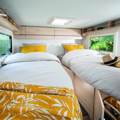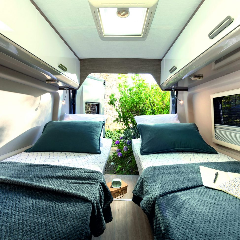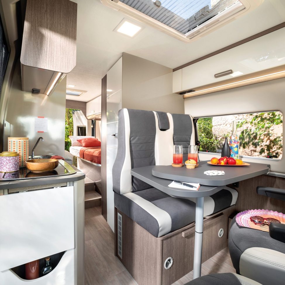Pierwsza z propozycji marki, czyli vany Chausson, to doskonałe rozwiązanie dla osób, które poszukują kampera o stosunkowo niewielkich rozmiarach, ale jednocześnie zapewniającego wszelkie wygody. W vanach francuskiej marki znajdziesz toaletę, prysznic, aneks kuchenny oraz od 2 do 4 miejsc noclegowych. Najmniejszy model vana dostępny w naszej ofercie ma 5,41 m długości, a najdłuższy 6,36 m. Co ważne, wszystkie kampervany od Chausson oferują aż 4 miejsca do jazdy.