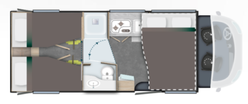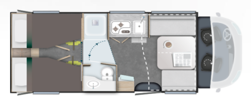 Model 797 stawia na przestrzeń i komfort, oferując przytulny salon z widokiem na twarz oraz dwa łóżka o szerokości 90 cm, które można przekształcić w jedno king-size. Z tyłu, podwójnie przedzielona łazienka zapewnia idealne oddzielenie strefy dziennej od nocnej. Ten smukły model przypadnie do gustu podróżnym ceniącym płynność ruchu, wszechstronność i wyrafinowane wnętrza – idealne dla dwóch osób, którym zależy na dużej przestrzeni w podróży.